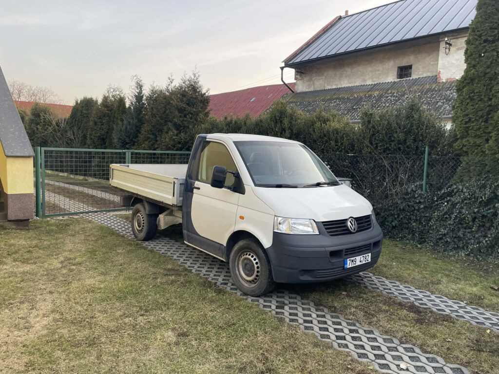 VW Transporter valník je univerzální vozidlo pro přepravu materiálu a vybavení.
