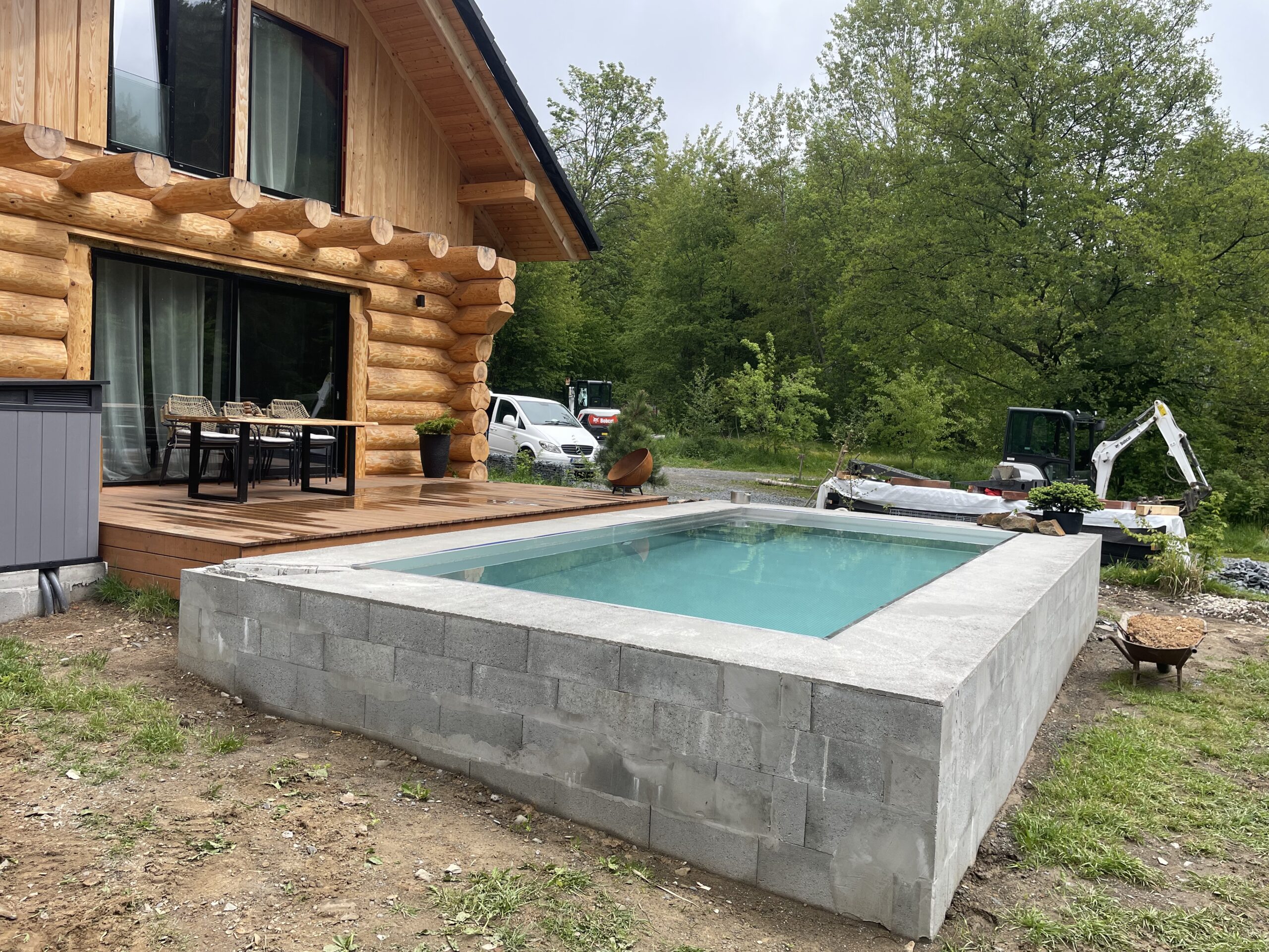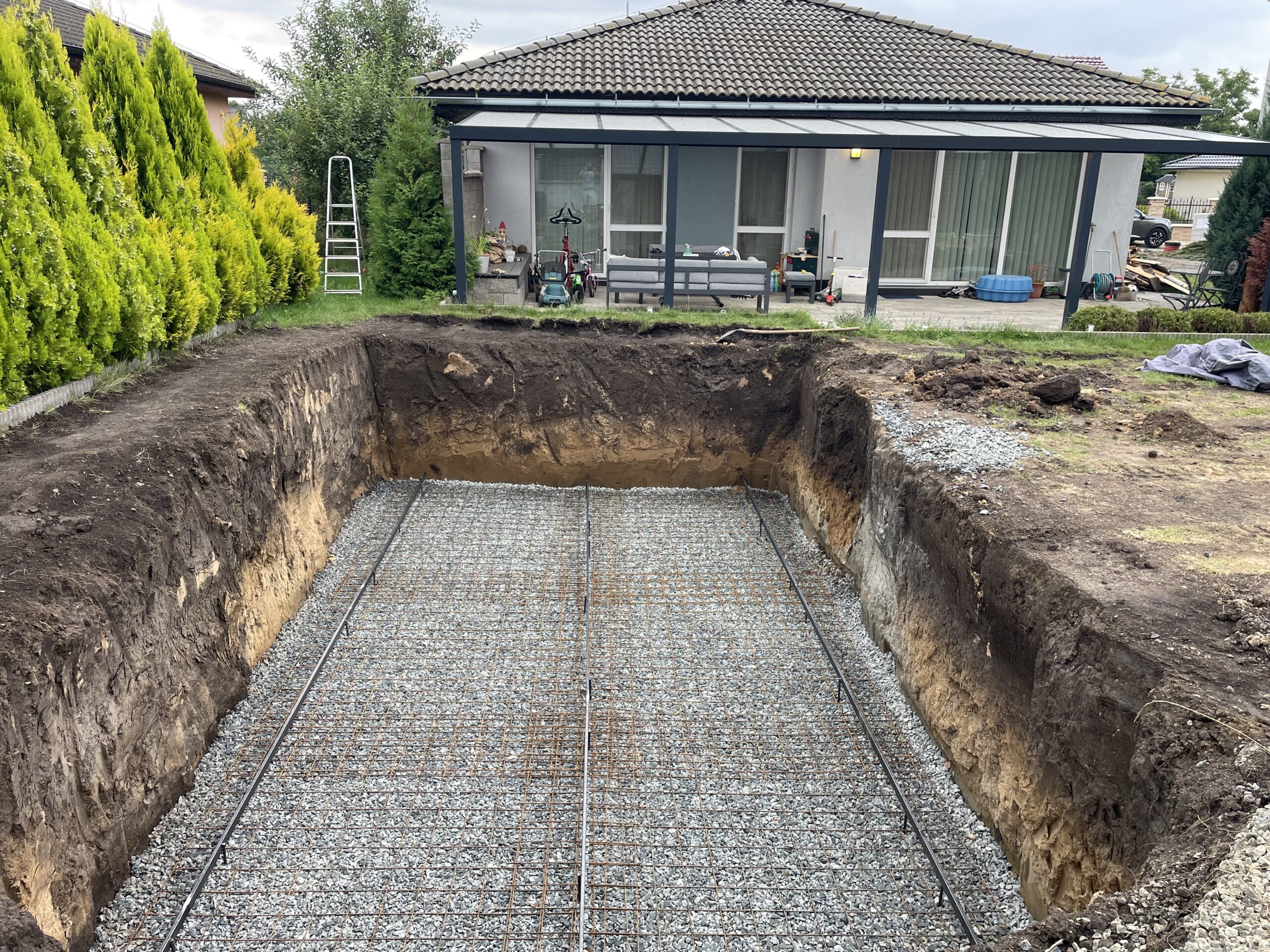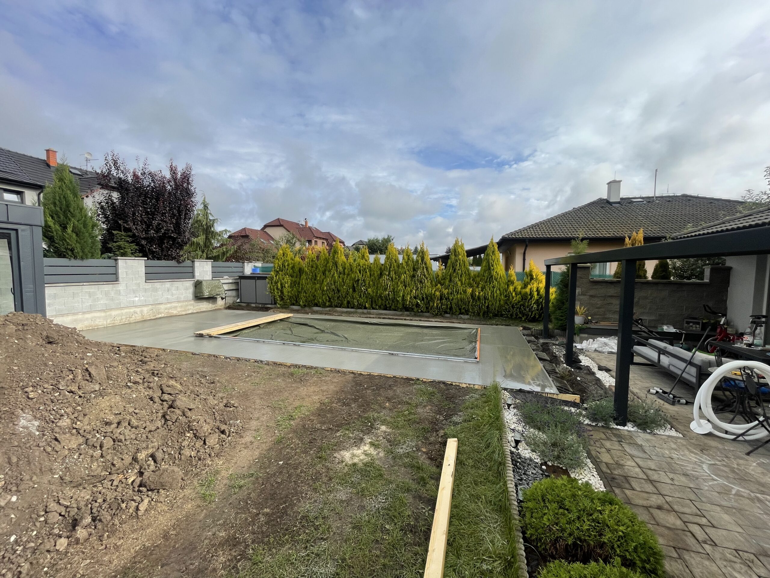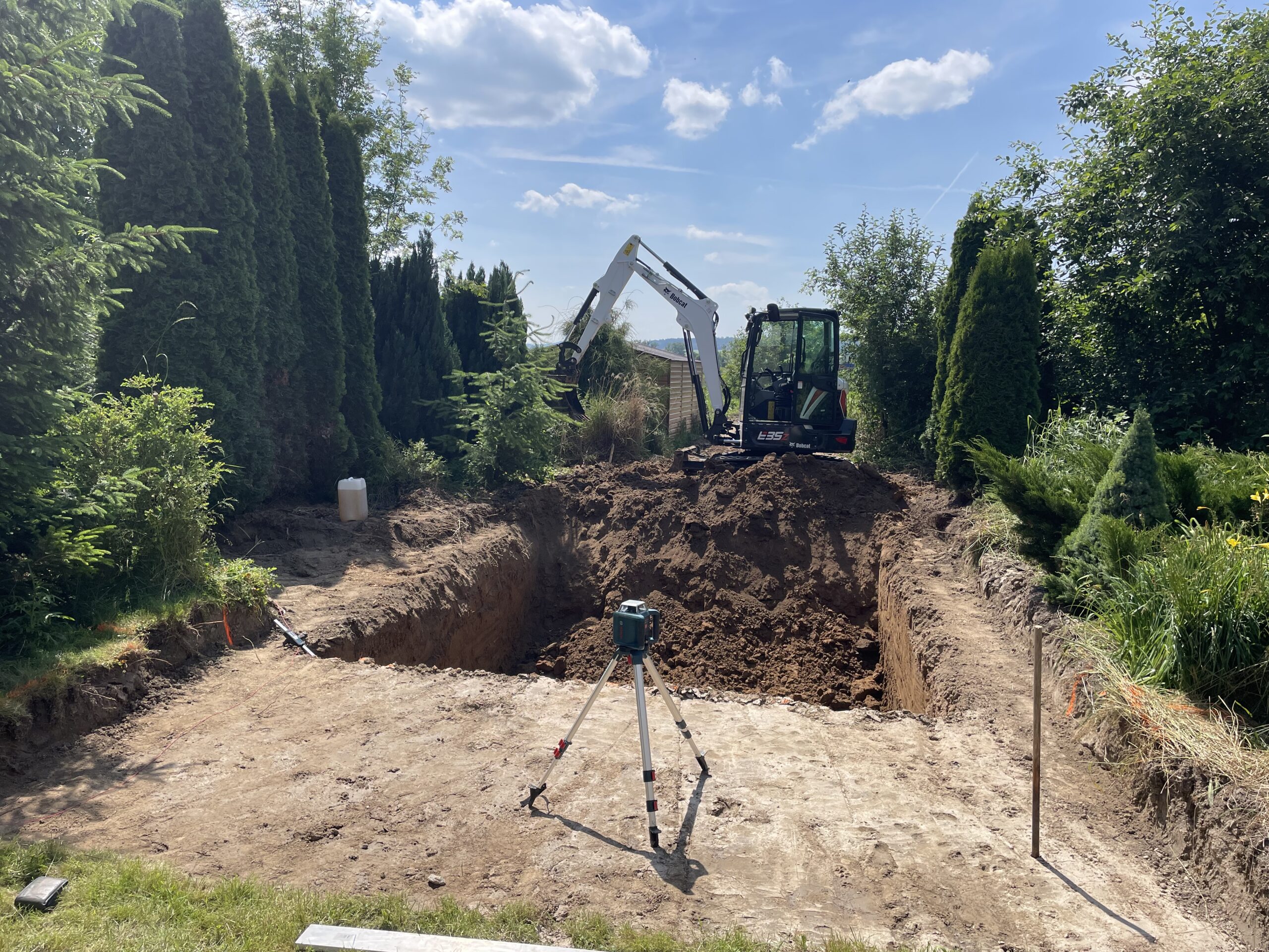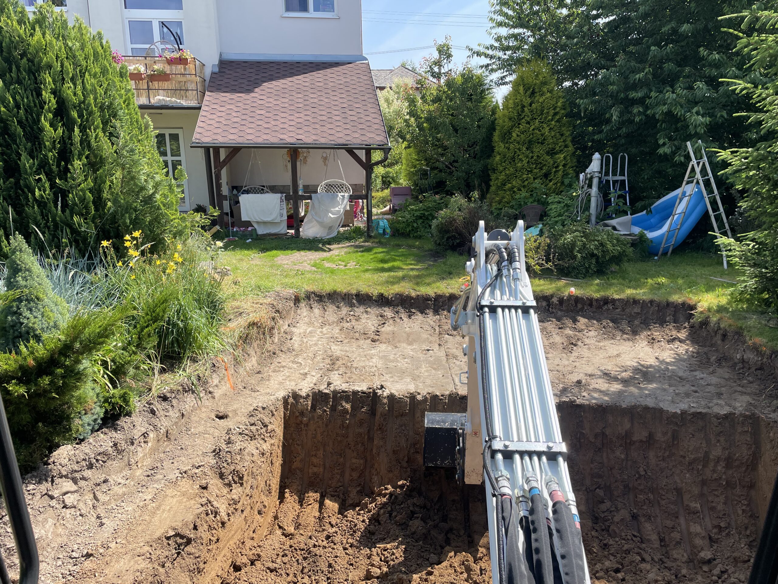 Zaměřujeme se na kompletní stavební a výkopové práce – od bazénů a koupelen až po hrubé stavby, terénní úpravy a oplocení.