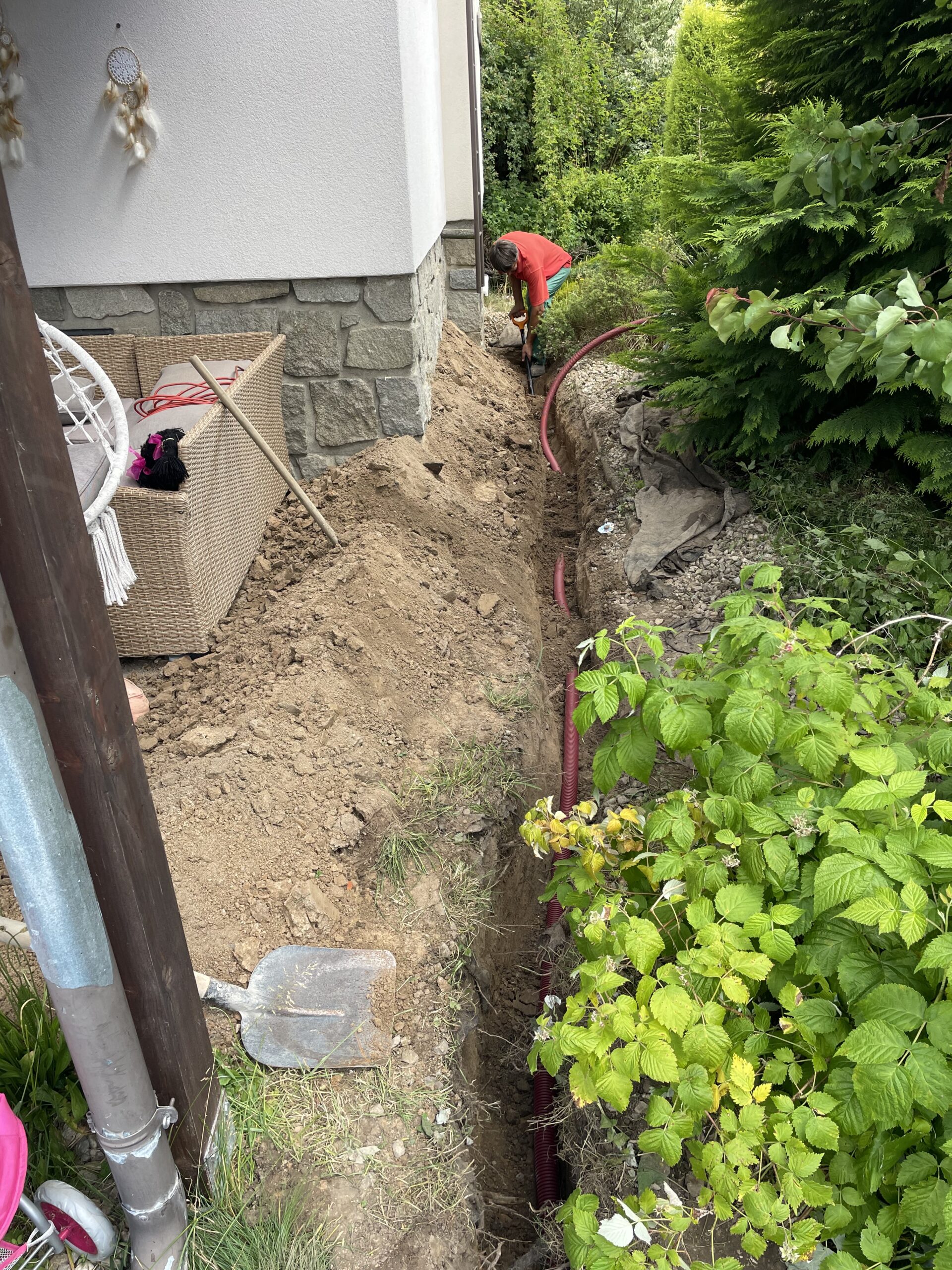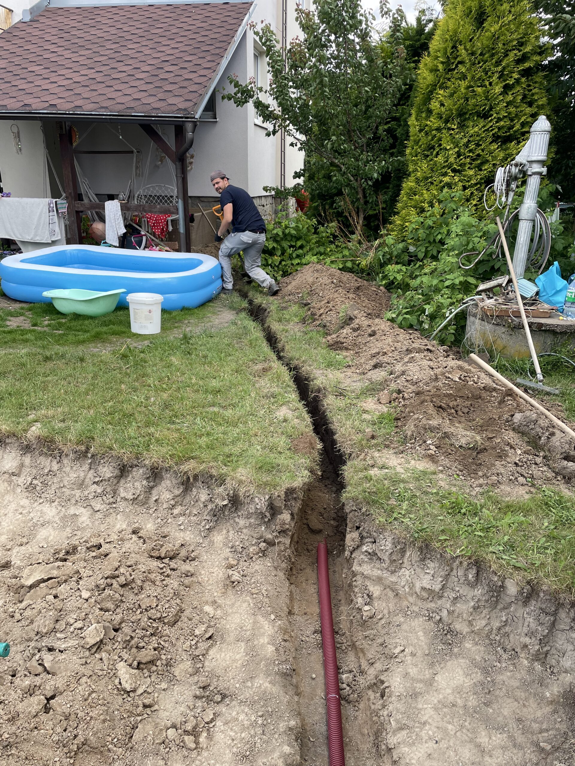 Pomoc při výkopech spolu s minibagrem.